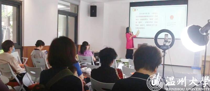 香蕉视频 家庭教育研究院巾帼文明岗负责人、香蕉视频 家庭家教家风讲师团团长、温州市家庭教育学会副会长、温州市家庭和谐文化研究会副会长周奇教授受邀做《好家风 好家教》的主题家庭教育讲座。本次讲座采用线上云直播加线下现场参加两种方式,更好用数字化赋能不能到现场听课的家长。