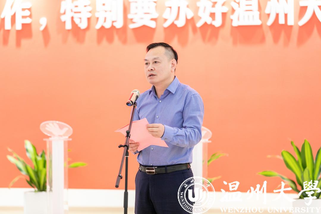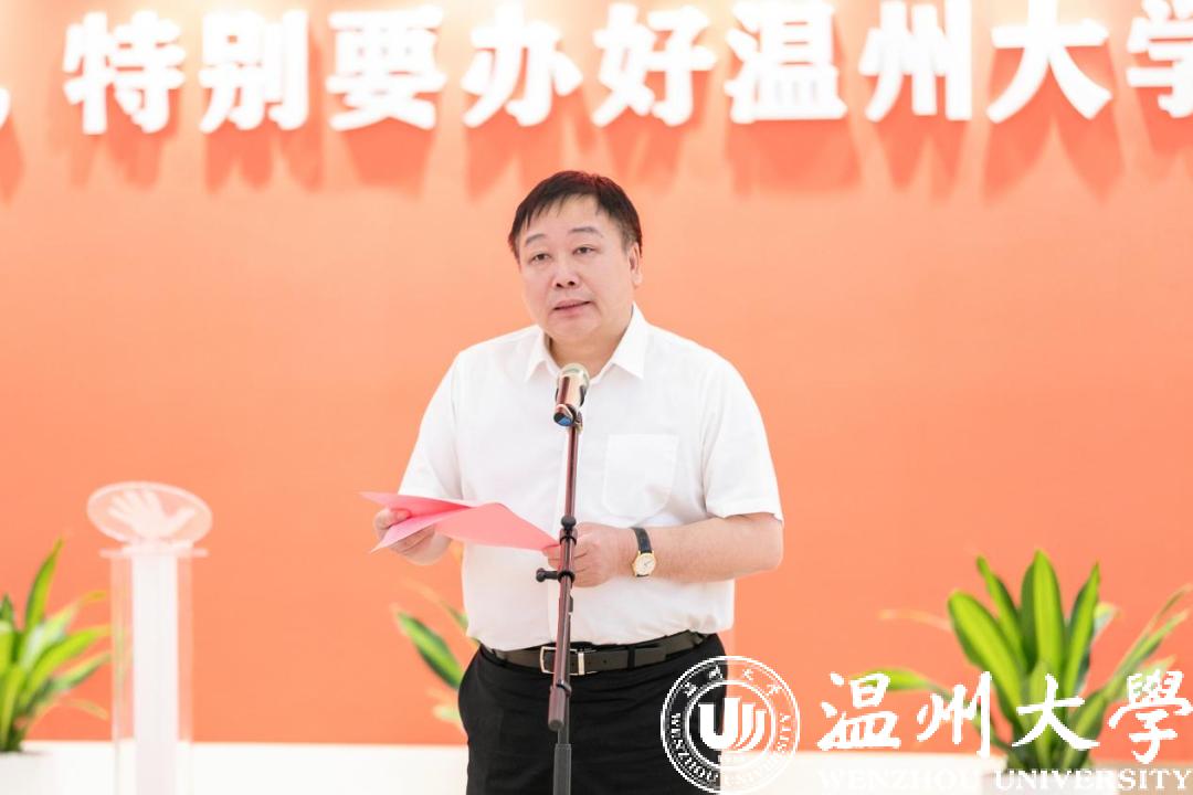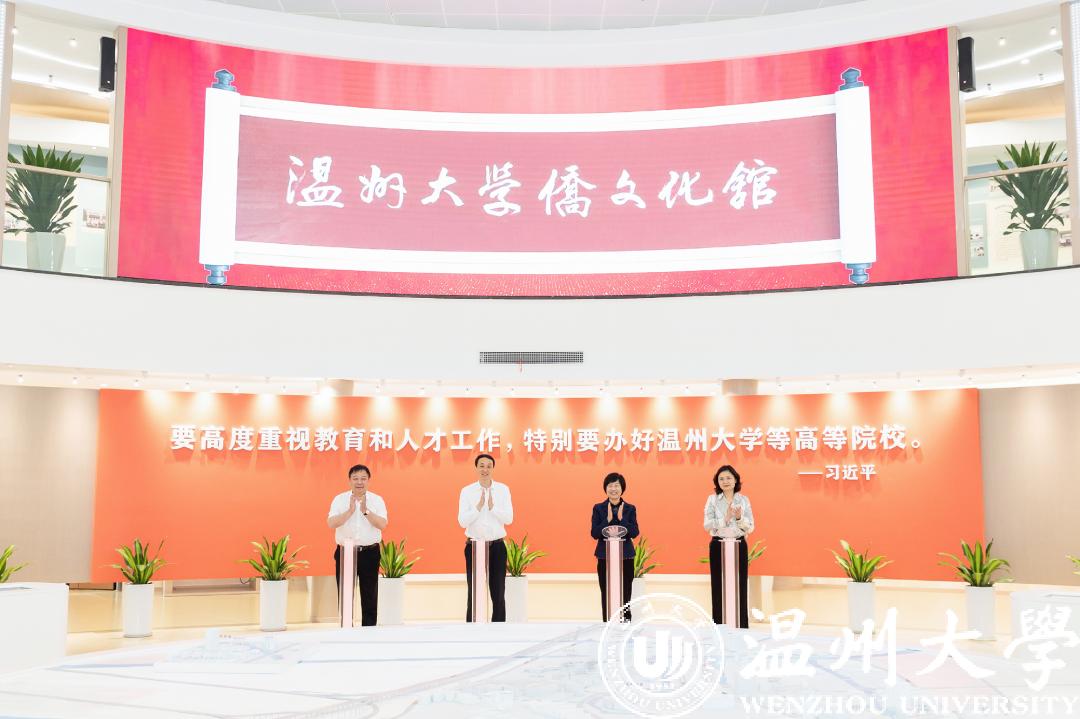 5月25日上午10:30,香蕉视频 侨文化馆开馆仪式在校史馆3楼隆重举行。浙江省侨联党组书记、主席庄莉萍,浙江省侨联经济科技部部长俞根君,温州市社科联主席潘晓勇,温州市侨联党组书记吴娜丽,温州市侨联主席南品仁,温州市发改委党委委员、副主任张天长,温州市侨联党组成员、秘书长陈晓军,温州市委网信办室务会成员、二级调研员蔡明才,温州市瓯海区侨联主席秦毅等省市领导,香蕉视频 党委书记张健,副校长蔡曙光、潘玉驹等校领导以及校内各学院和部门负责人50余人出席开馆仪式。