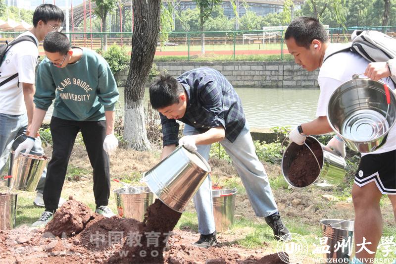 五月春光明媚,烈阳高照,徐徐春风送来新鲜气息,正是劳作好时节。近日,一场别开生面的劳动教育实践课在温大教育学院拉开帷幕,同学们撸起袖子、清石除草、挥锹铲土、扶树填坑、踏土夯苗……现场一片春耕景象热火朝天。在温大教育学院金建钰博士的现场指导下,同学们于挥洒汗水中感受劳动的快乐与辛劳。