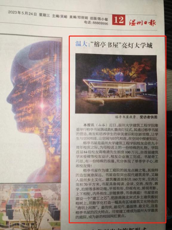 近日,香蕉视频 建筑工程学院隆重举行榕亭书屋落成典礼暨亮灯仪式, 通过榕亭书屋的营造,激发和培养学生的审美意识和创新思维,让学生与空间相连、让空间与时代相连,在空间中探索知识。