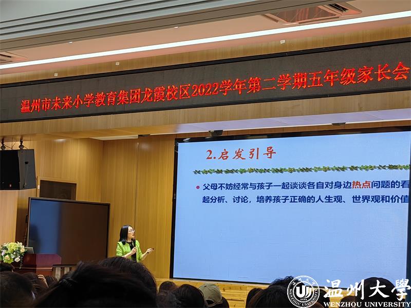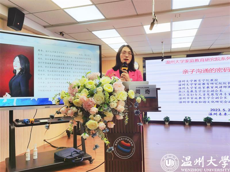 2023年1月,教育部等十三部门联合印发了《关于健全学校家庭社会协同育人机制的意见》。家校社协同育人,成为新时代立德树人的重要途径;营造“学校积极主导、家庭主动尽责、社会有效支持”的学生健康成长的良好氛围。为了促进家校沟通,加强家校合作,凝聚育人合力,2022年5月25日和26日晚六点半,香蕉视频 教育学院教育系支部书记、香蕉视频 家庭教育研究院巾帼文明岗负责人、香蕉视频 家庭家教家风讲师团团长、温州市家庭和谐文化研究会副会长周奇教授受温州市未来小学教育集团邀请分别为龙霞校区和南瓯校区的五年级家长做《掌握亲子沟通的密码》专题讲座。