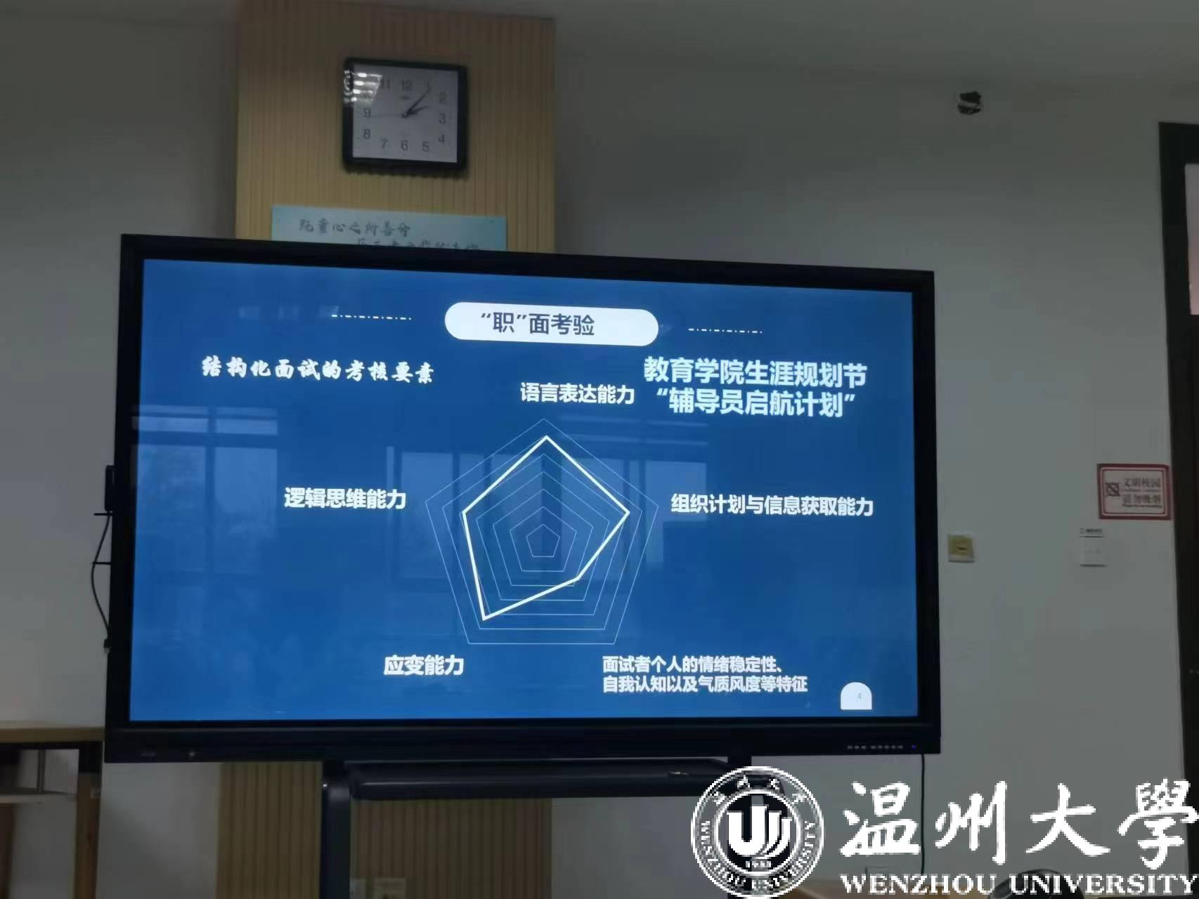 不仅如此,温大教育学院还特别邀请了温大生命与环境科学学院党委书记、副院长姜海燕副教授,从历年辅导员面试真题出发,手把手教同学们如何进行答题。姜老师是国家高级职业指导师、职业人才测评师,有多年的辅导员工作经验和面试经验。她不仅为同学们指出答题中的漏洞,提出更合适的优化建议,还总结系统性答题技巧……“太棒了!姜老师以面试官的视角带我体验了一次辅导员面试过程,也更好的发现自己的不足之处。”一位正在备考辅导员的研三学生说。
