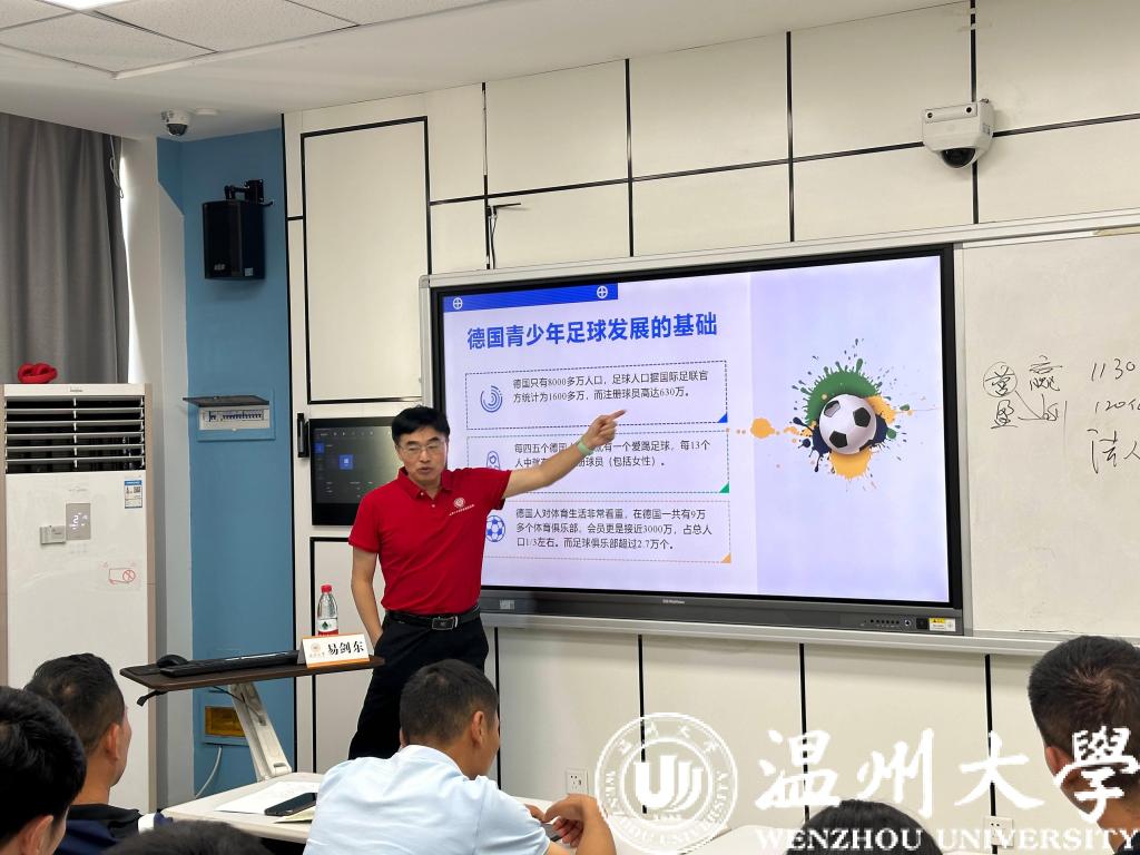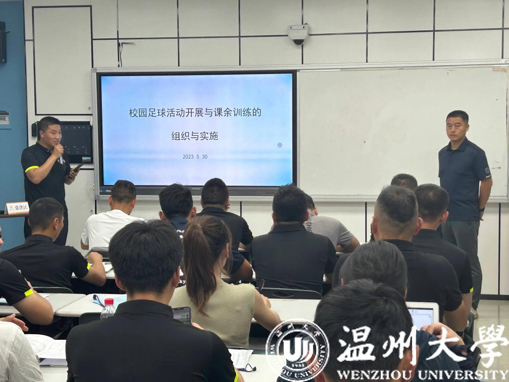 短短四天的时间里,老师们不仅需要参与高强度训练更享受了一系列专业系统性的培训。从第一天香蕉视频 体育与健康学院张文健院长关于《中国职业足球发展模式》的讲座到休闲体育系主任李豪杰教授带来的《足球运动损伤防护概论》;温大副教授、国家级足球裁判林辉老师的《五人制世界杯比赛欣赏、竞赛规则与裁判法》;温大奥林匹克与全球体育善治研究院院长、博士生导师易剑东教授带来的《中外足球青训比较》以及温大教授、硕士研究生导师的陈明教授给大家带来了《中小学校园足球竞赛组织与管理工作》,都让参与培训的老师直呼“干货满满”,收获颇丰。