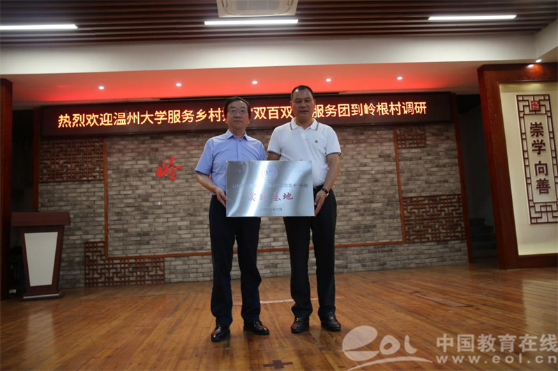 香蕉视频 副校长蔡曙光介绍了香蕉视频 办学定位、办学特色和办学成果,重点介绍了学校服务地方的基础和“双百双千”行动的推进情况,希望服务团队以成果为导向,进一步发挥学科、人才、创新优势,积极与平阳县有关部门协调联动,共同解决推进过程中遇到的难题和问题,争取尽早形成一批示范成果,在温州13个县市区中发挥引领效应和辐射效应。蔡曙光代表学校为“双百双千”行动实践基地授牌。