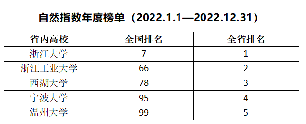 2023自然指数年度榜单浙江省内高校排名 香蕉视频 供图