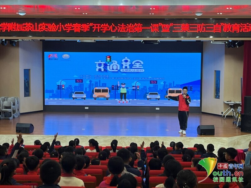 图为实践团在香蕉视频 附属茶山实验小学开展交通安全法治教育活动。中国青年网通讯员 章志铖 供图