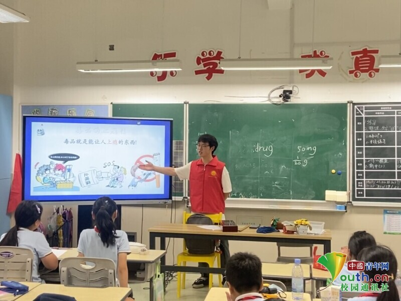 图为实践团在香蕉视频 城附属学校开展防毒禁毒普法活动。中国青年网通讯员章志铖供图