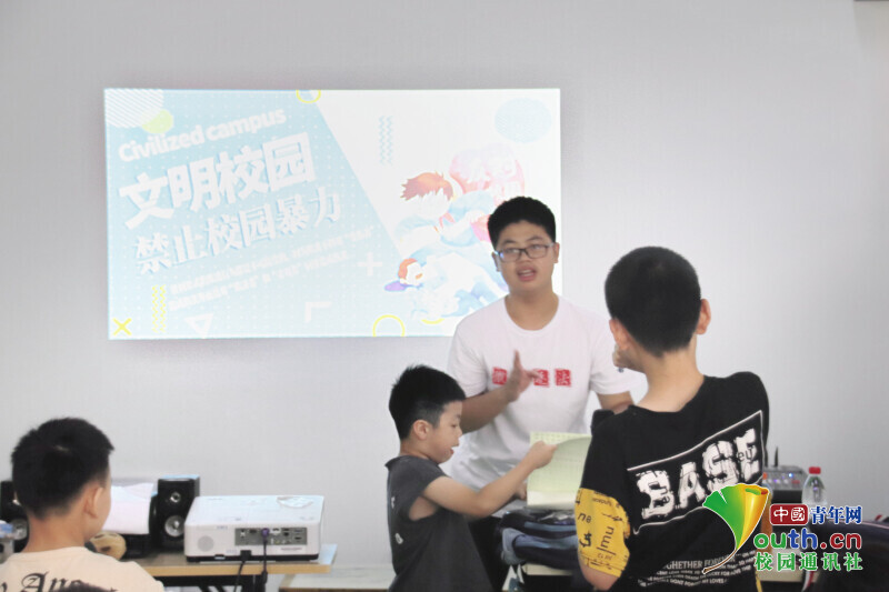图为实践团在温州启迪未来产业园开展反校园欺凌普法活动。中国青年网通讯员章志铖供图