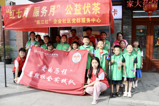 “防溺水”安全教育课上,实践队员们通过真实案例分析、模拟溺水自救、讲授防溺水“六不准”口诀等方式是孩子们了解和掌握防溺水和溺水后如何自救的常识,让防溺水安全教育入脑入心,共筑防溺水安全防线;古建筑文化课上,一张张温州古建筑图品映入眼帘,或雕梁画栋,或飞檐翘角,或红墙青瓦,孩子们直观地感知到绵延不绝的历史气息,感受温州传统建筑魅力;非遗手工课上,指导老师详细讲解了非遗“蓝夹缬技艺”的历史渊源、技术工艺及制作过程,带领孩子们在体验夹缬“扎、染、洗、晾”的制作过程中,感受匠心传承;社内送茯茶活动上,小小志愿者们为过往居民、环卫工人、快递小哥、交警等户外劳动者提供清凉茯茶,每一碗凉茶都凝结着孩子们的善意与爱心,在炎炎夏日里送来缕缕清凉……这一堂堂丰富多彩的课程和送温暖的活动,给“小候鸟们”带来了深刻而难忘的体验,也在寓教于乐中,为孩子们传授知识,了解传统文化,践行传统美德。