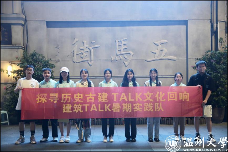 在五马街,香蕉视频 暑期实践队找寻着历史古建、传统文化载体和体现温州乡土人情的建筑,他们穿梭在城市的大街小巷,记录和学习传统建筑的造型和原理。“大家看这里,这五匹扬蹄飞奔的骏马雕像就是五马街名字的由来,青铜工艺效果和汉唐造型艺术风格透露着深厚的历史底蕴,雕塑的基座以桥为设计起点,配置以喷泉流水,突出温州水乡特色。”