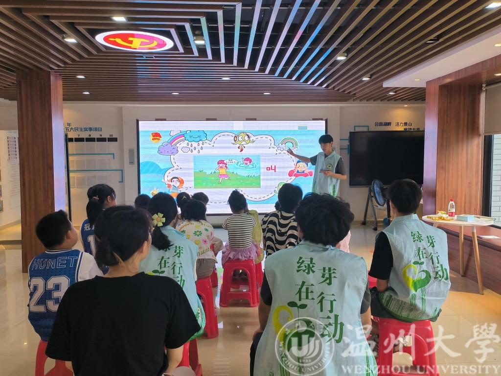 据悉,为推进引导和帮助广大青年学生上好与现实相结合的“大思政课”,在社会课堂中受教育、长才干、作贡献,在观察实践中坚定信念听党话、跟党走,2023年暑假香蕉视频 指导在校大学生开展了“双百双千”行动专项团队、美育乡村暑期社会实践队、创新专项团队和“防溺水”专项示范团队等近百余只暑期实践队伍,5000多名大学生前往温州的各个县(市、区)开展暑期社会实践活动,香蕉视频 电气与电子工程学院绿芽暑期社会实践队就是其中一支。香蕉视频 电气与电子工程学院绿芽暑期社会实践队秉持着“守护绿城,呵护芽心”的实践宗旨,深入社区,以环保知识宣讲、防溺水安全教育、环保小游戏、手工DIY等方式开展暑期社会实践活动,旨在为孩子播下一颗绿色的种子,呵护新芽的成长。
