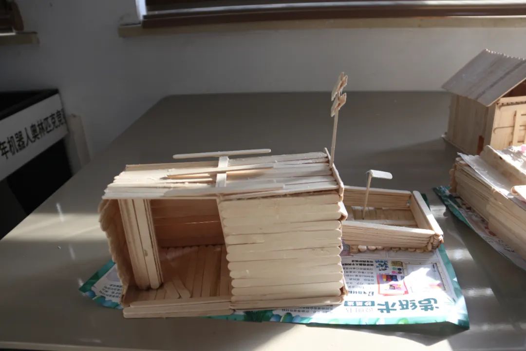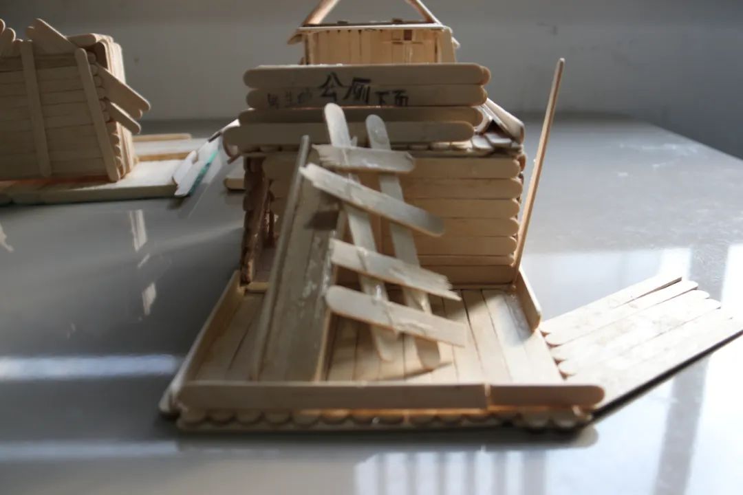 活动中,大学生志愿者们发挥自己的专业特长,向孩子们讲述历史气息浓厚的温州古建筑,并以图文影视等方式带领他们观赏鹿城中山公园、江心屿文天祥祠,温州妙果寺、三垟周氏旧宅,龙湾永昌堡、瑞安圣井山石殿、洞头望海楼、乐清百岁亭等古建筑,讲述一个个有趣的故事。在孩子们一声声惊叹中,进入到本次课程的高潮部分——化身小小建筑师,搭建独特风格的建筑。大学生志愿者们将孩子们分成多个小组指导他们设计建筑图并动手实验,引导孩子们建地基、搭木房、配装饰等。在这期间,每一个孩子都积极地参与,表达自己的想法,利用雪糕棍和胶水将想法付诸于作品,最后的成品都栩栩如生。