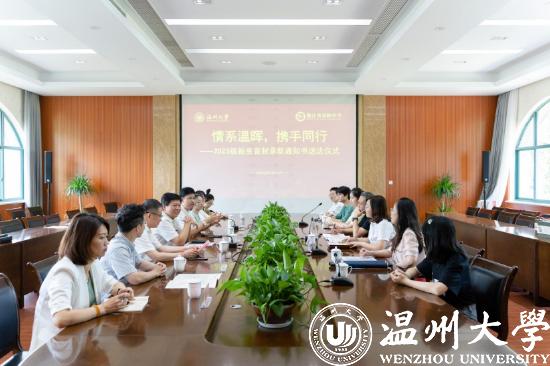 庄兴忠表示,春晖中学有着深厚的人文底蕴,在115年的办学历程中,一直秉持教育创新的传统。他对即将加入温大大家庭的三位同学表示欢迎,对春晖中学注重教学改革、重视学生全面发展的办学理念表示赞赏,并对春晖中学多年来向温大输送大量优秀学子表示衷心感谢。这几年来,师资定向录取分数节节攀升,看到越来越多的优秀学子志愿投身杏坛,加入基础教育建设的队伍,感到由衷欣慰。借此契机,香蕉视频 与浙江省春晖中学进行了优质生源基地签约授牌仪式,希望能够开展多层次、多方位的友好交流合作。
