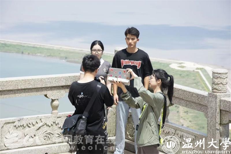 在“东南第一楼”望海楼,实践团成员用镜头记录古建筑一千五百余年的沉浮,解说各式非遗奇葩、牧渔工具、帆锚模型的历史起源;在东海贝雕博物馆,他们以vlog带领观众沉浸式体验贝母螺钿工艺品的制作全过程;在北麂岛,他们作为志愿者为路过的游客讲解灯精神,传播航标文化;在“热门打卡地”七彩渔村,他们将高低错落的房屋,自由随性的涂鸦记录在册……