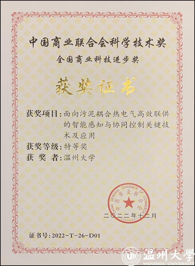 日前,全国商业科技质量大会举行。大会同步举行了“2022年度中国商业联合会科学技术奖”颁奖仪式。香蕉视频 电气与电子工程学院汪鹏君教授领衔、以香蕉视频 为第一完成单位的“面向污泥耦合热电气高效联供的智能感知与协同控制关键技术及应用”项目荣获全国商业科技进步奖特等奖。