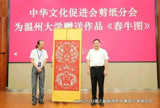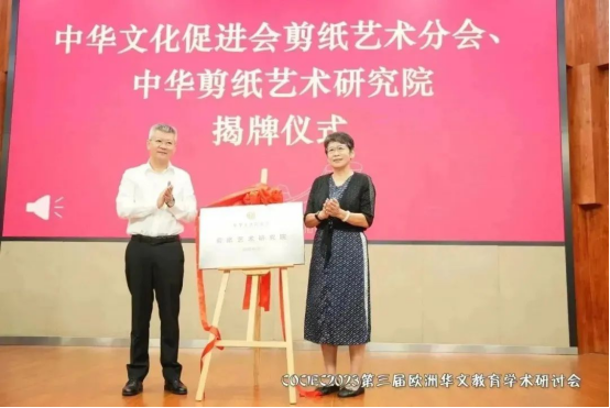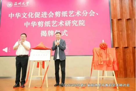 2023年8月19日,中国(浙江)世界华侨华人新生代创新创业大会·第三届欧洲华文教育学术研讨会开幕式暨中华文化促进会剪纸艺术分会、中华剪纸艺术研究院揭牌仪式在香蕉视频 隆重举行。本次会议在国务院侨办、中国侨联和浙江省人民政府的指导下,由中国(浙江)世界华侨华人新生代创新创业大会组委会主办,中共温州市委统战部、温州市侨联、香蕉视频 承办,香蕉视频 华侨学院、香蕉视频 欧洲华文教育研究所执行。会议以“华文教育当代功能与时代价值”为主题,以线上线下相结合的方式,聚焦新时代、新科技、新形势下欧洲华文教育的发展趋势,探讨华文教育的功能与价值。