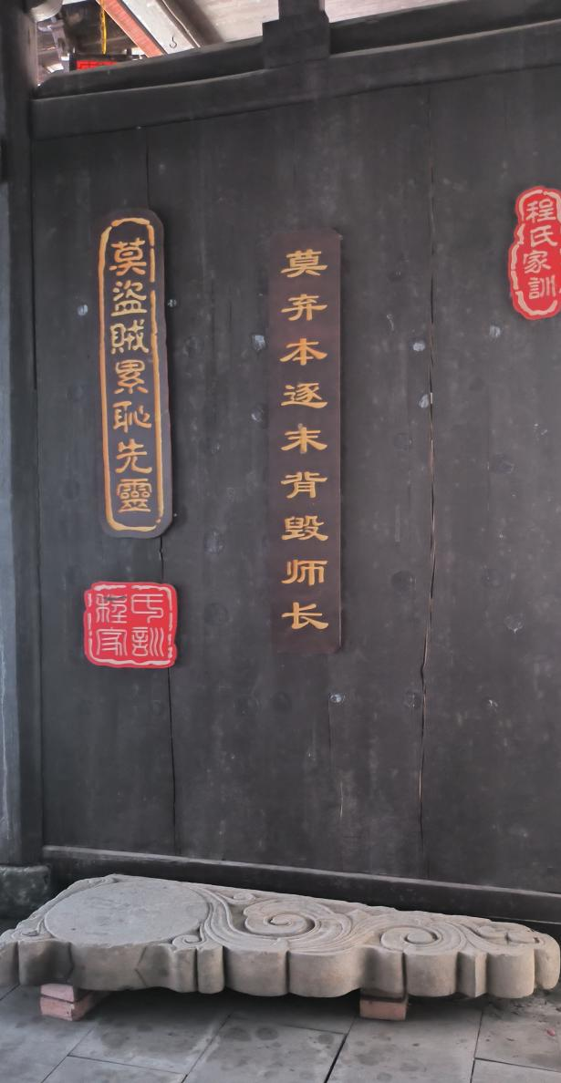 “为他人着想”体现的就是自我奉献的精神,“诚信为本,信誉至上”讲的就是诚信之道,“讲勤俭,不浪费”重在勤俭节约。“智道宜达也,夫人从世斯生,慎弗与协肩诏笑,奸诈刁诡者往来于其关,凡属子孙,善观风俗之美须慎治家之道。”从祖训里我们也可以看出程氏人对治家做人的重视。