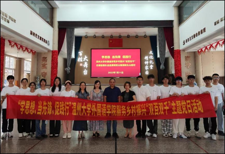 在山福镇实地调研期间,“译山田”实践队还结合专业特长,为山福镇20多名儿童开展以“城乡印记 双语随行”为主题的支教活动,通过非遗、亚运、手工、科普、安全等五大系列的双语课程,组织当地儿童排练《齐心协力救果树》的森林英语短剧、学习歌曲《一起向未来》的手语,进一步丰富当地儿童的暑期生活,以实践探索乡村文化振兴路径。