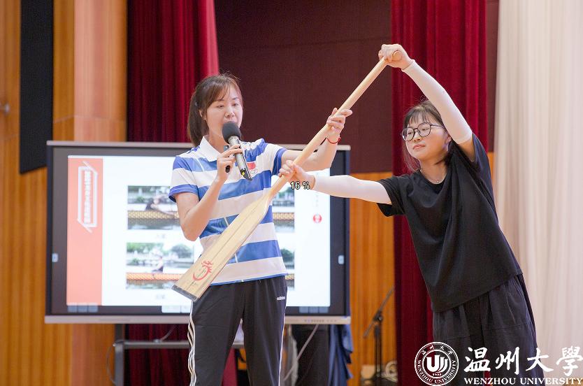 PART 02退役回温州 致力推广龙舟2016年,在离开家11年后,朱敏圆从国家队退役,回到家乡,在香蕉视频 成为一位教师,主抓龙舟项目,将水上运动的种子播进了温大的校园。