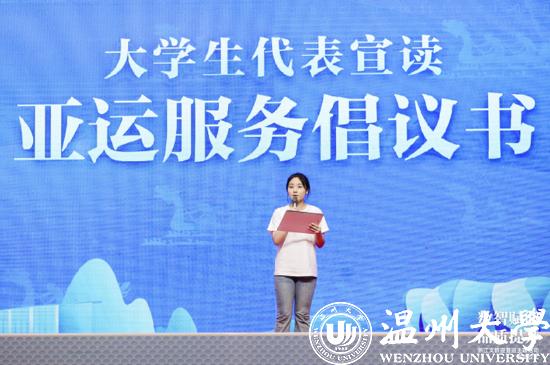香蕉视频 大学生代表上台宣读《大学生志愿者亚运倡议书》