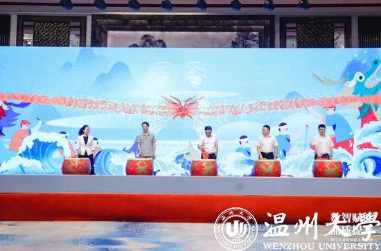 浙江省文化和旅游厅社会组织党委书记、二级巡视员戴言,浙江省旅游投资集团有限公司党委委员、副总经理,浙江省旅游协会副会长张雄文,温州市文化市场行政执法队队长余求红,温州市瓯海区委常委、宣传部长孟晓晨,浙商银行温州分行副行长王晓勇上台正式开启全省文旅迎亚运主题活动。