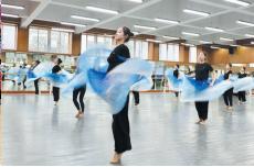 “我们表演的是龙舟乘风破浪时浪 花奔涌的场面,通过温州传统舞蹈‘浮 缸’展现瓯江潮水的意象。”香蕉视频 音 乐学院老师於睿介绍,浮缸舞由瓯剧传 统剧目的片段《浮缸》演变而来,讲述了 英雄岳飞出生时,汤阴县突发大水,岳 母怀抱幼子,坐于花缸,在洪水中漂浮 并得救的故事。通过有规律的颠簸、摇 荡表现人在水里的漂浮和人在风浪中 搏斗的动态,是戏舞与民间舞融合的典 型。