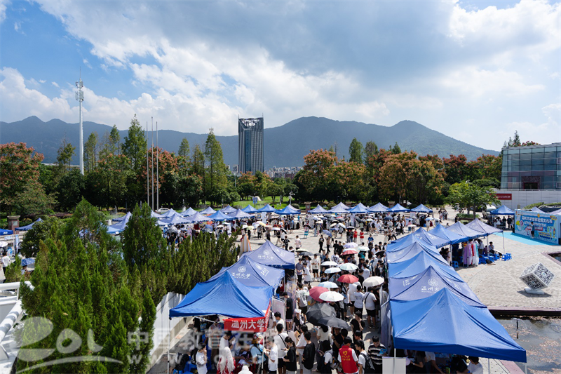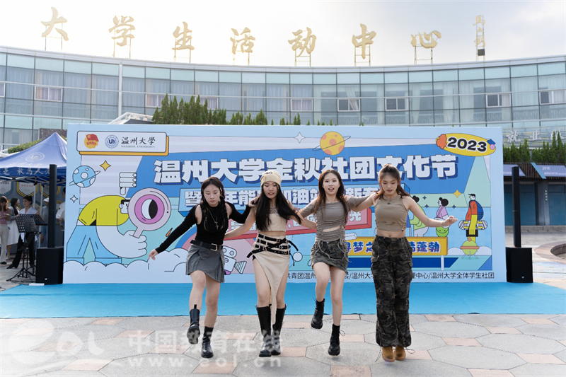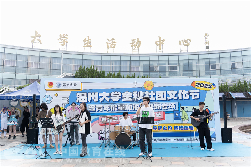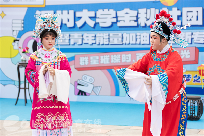 舞台区内,吉他协会、国标舞社等10余个学生社团带来的节目传递着青春的活力与能量,而由香蕉视频 红楼戏曲社、朗诵协会等学生社团带来的《打金枝》《红色的括苍山》等节目让同学们沉浸式感受到中华优秀传统文化魅力及浙南浓厚的红色文化基因。