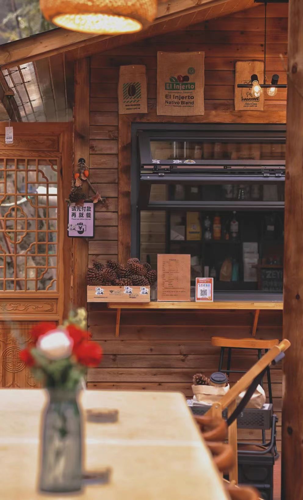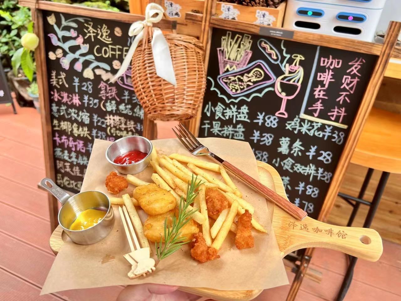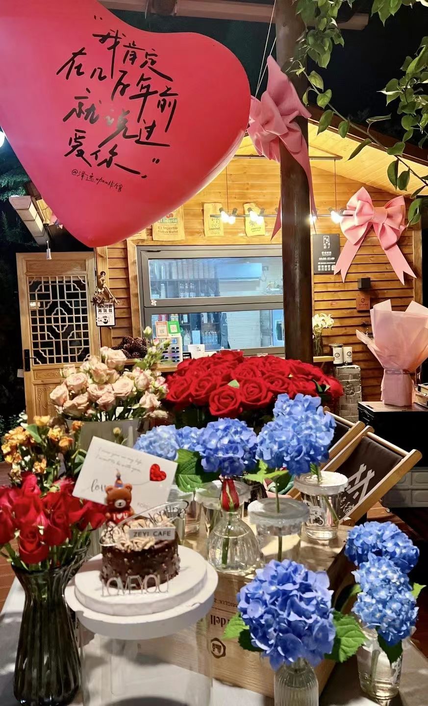 季炜俊便投身于店铺的建造工作,仔细考量从搭建房梁、安装屋顶到铺设地板、设定装饰风格的各类装修事宜,最终,原木与潮流风格相融合的“泽逸咖啡馆”就此诞生,店内设立了许多拍照打卡点,粉色蝴蝶结、多肉植物、网红墙等,不同于一般旅游景区的店面装修,季炜俊的咖啡馆顺应时下潮流,在传统的旅游餐饮服务中开辟出一种属于自己的风格。