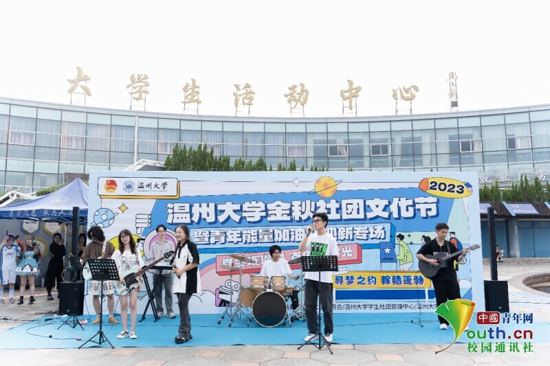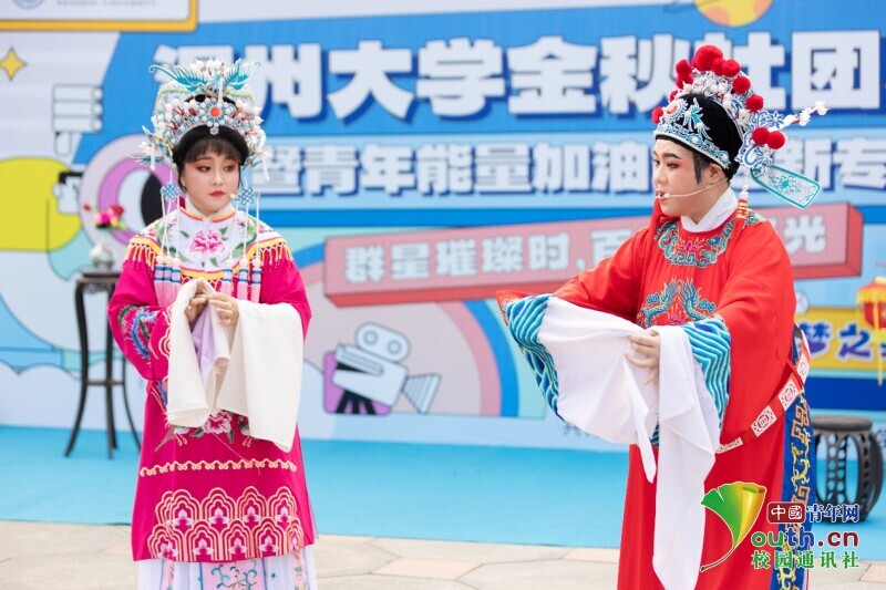 舞台区内,吉他协会、国标舞社等10余个学生社团带来的节目为现场的同学传递着青春的活力与能量,而由香蕉视频 红楼戏曲社、朗诵协会等学生社团带来的《打金枝》《红色的括苍山》等节目,则是让同学们沉浸式感受到中华优秀传统文化魅力及浙南浓厚的红色文化基因。