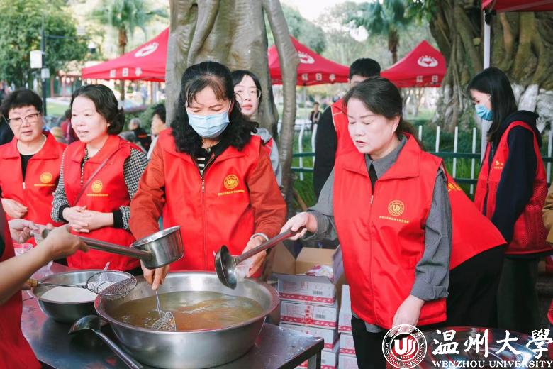 当天上午,香蕉视频 离退休第十党支部18名志愿者身着红马甲,早早地来到红日亭活动现场。在红日亭义工队负责人带领下,他们拉横幅、搬桌椅、摆碗筷、煮汤圆……忙得不亦乐乎。