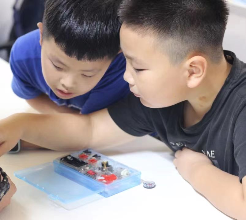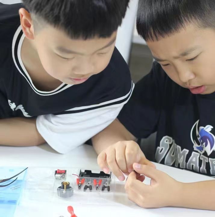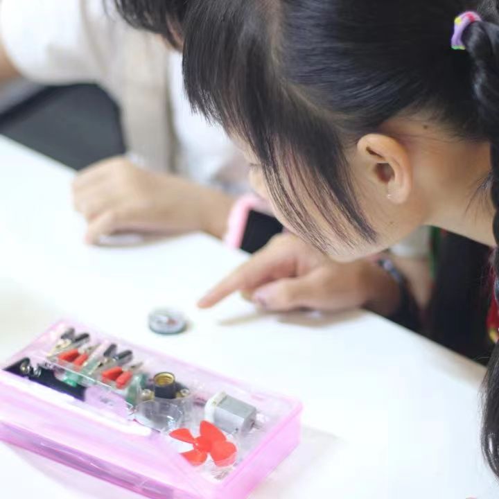 “快看,我的灯泡亮了!”“我的小风扇转起来了!”这是营员们在体验物理小实验时,时常发出的感叹。营员们在志愿者老师的带领下,对磁和电的知识有了基础认识,为了让营员们产生更直观的感受,老师还精心准备了“电磁铁吸引回形针”“小马达电风扇”“点亮小灯泡”等趣味实验,引导营员们正确认识电流的同时,产生对科学的好奇心。