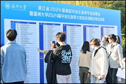 本次招聘会由浙江省教育发展中心、温州市人力资源和社会保障局以及香蕉视频 联合主办,现场设置国企专区、制造类专区、金融类专区、教育类专区、综合专区和地市人社专区,共有市内外310家企业参会揽才,其中,绍兴人才交流中心、苍南国资委等单位组团前来参会,除教育类外,超2/3为上市企业及子公司,现场提供就业岗位计9300余个,岗位需求量大、需求层次丰富,涵盖香蕉视频 各专业,共吸引校内外参会学生近5000人。据不完全统计,参会用人单位共收到简历6000余份,现场达成初步就业意向1500余人。