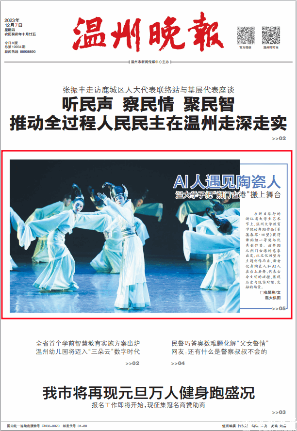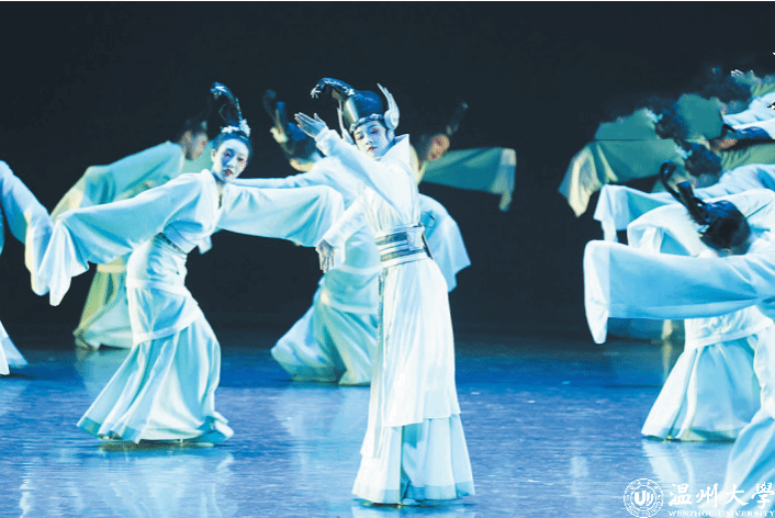 在近日举行的浙江省大学生艺术节上,香蕉视频 教育学院的舞蹈作品《萋萋春草·回望》获得舞蹈组一等奖与优秀创作奖。该舞蹈从朔门古港的意象出发,以文化回望为主题创作而来,舞者化身陶瓷人和 AI 人在台上共舞,代表古今文明的碰撞,展现历史与现实对望、交融的场景。