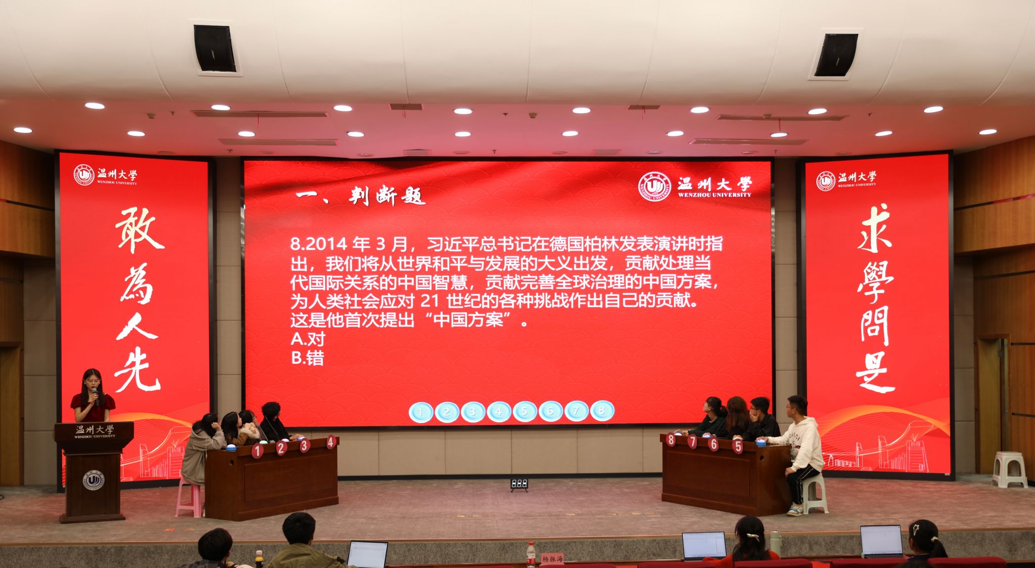 “恭喜2号同学抢答成功!”……在育英图书馆二楼报告厅,香蕉视频 “习近平法治思想”知识竞赛如火如荼地进行,将法治学习的知识性与趣味性融为一体。500余名学生参与到知识竞赛初赛环节,最终24名选手进入决赛。