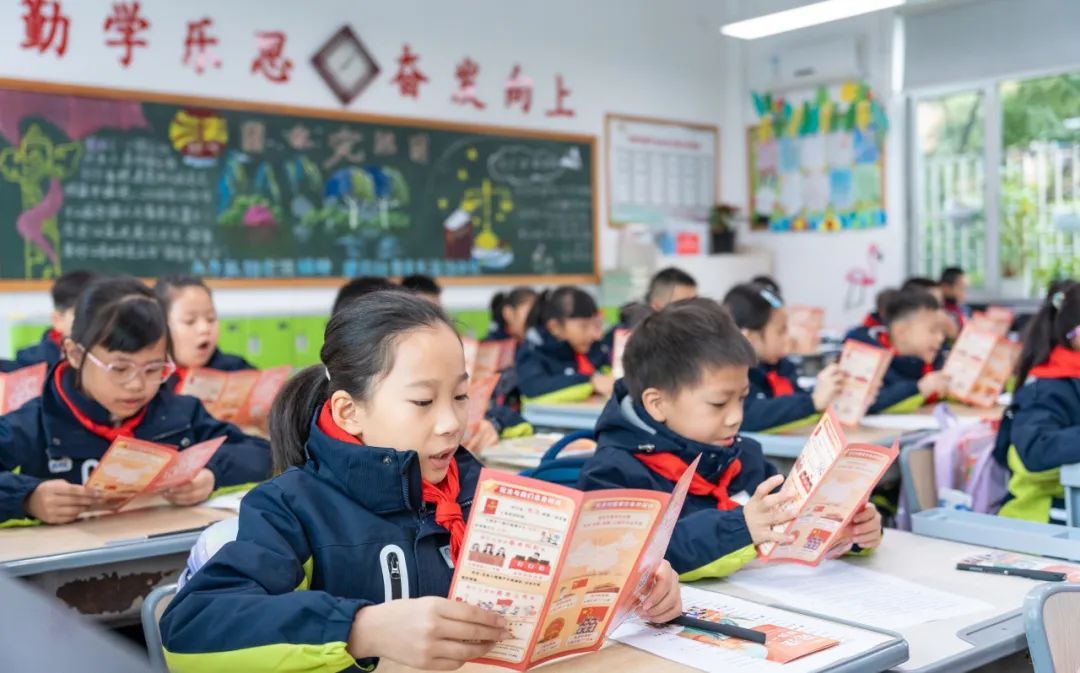 杭州市笕桥花园小学编排了《宪法伴我成长》手势操。