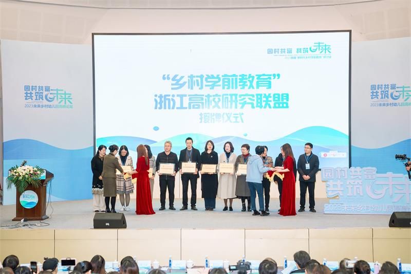 研讨会开幕式上,香蕉视频 学前教育系作为召集单位,携手浙江省各高校学前教育系牵头组建浙江省乡村学前教育研究联盟,赵降英副书记和何春玲副处长共同为联盟授牌。